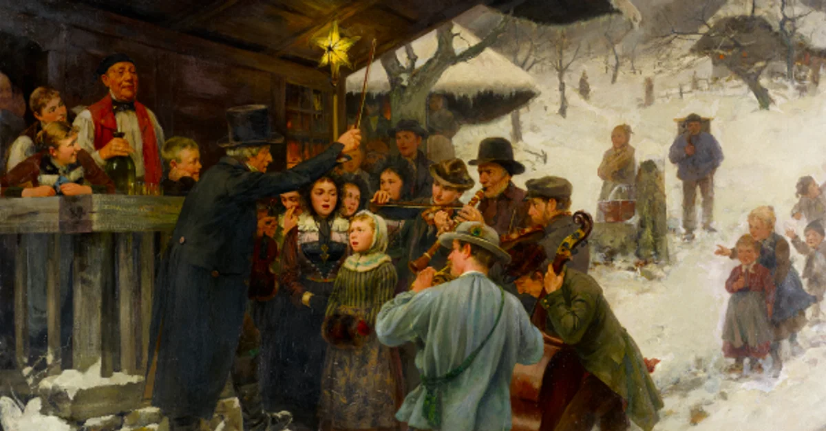 An 1887 painting A Christmas Carol in Lucerne by Hans Bachmann. (Kunstmuseum Basel, Switzerland)