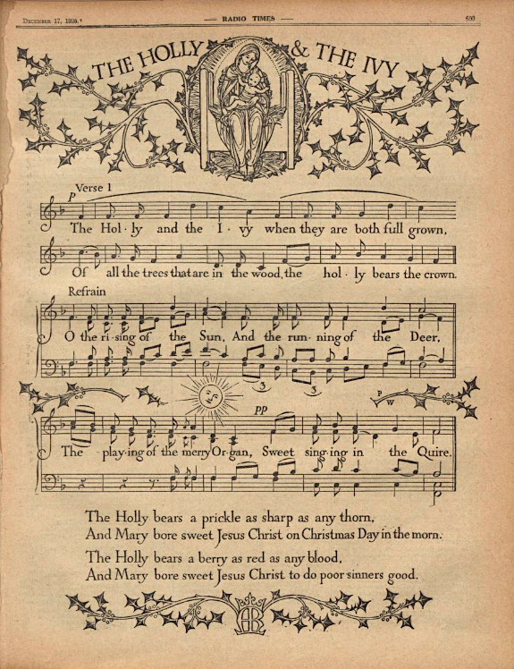 A page of sheet music for the Christmas carol The Holly and the Ivy. From a 1926 issue of the Radio Times magazine.