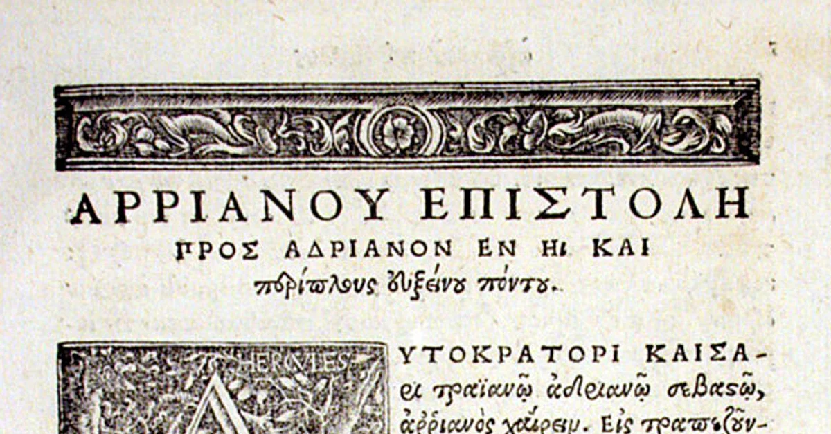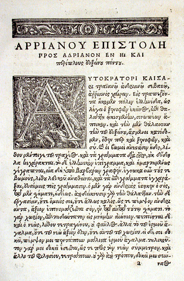 Beginning of the Periplus of the Euxine Sea by Arrian of Nicomedia, Johann Froben and Nicolaus Episcopius, Basel 1533.