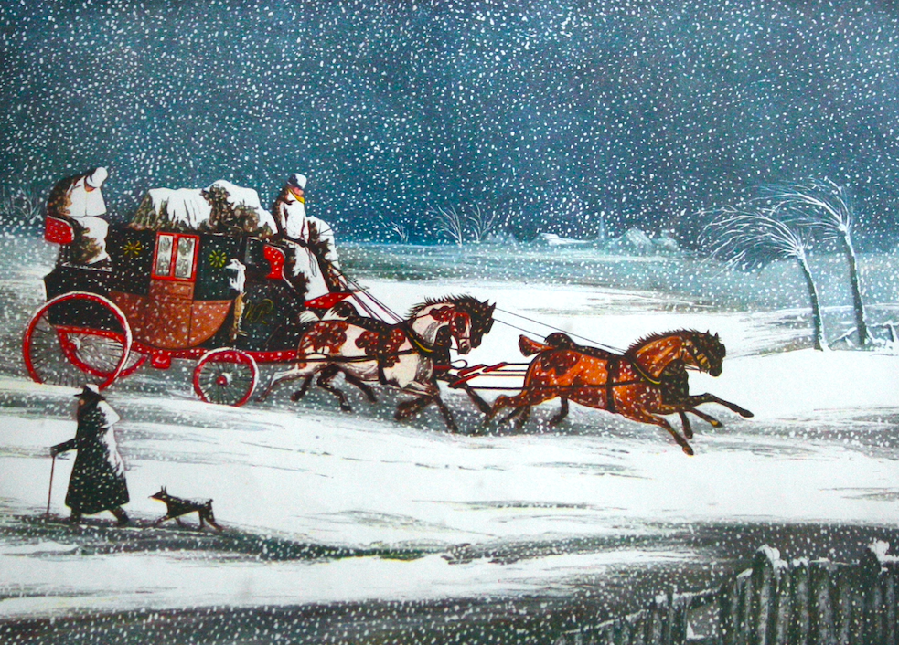 A lithographic print by H. Alken titled The Brighton Mail on Sunday, December 25, 1836. Printed by R. Havell of London. (Private Collection)