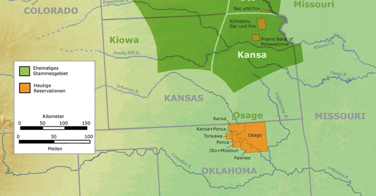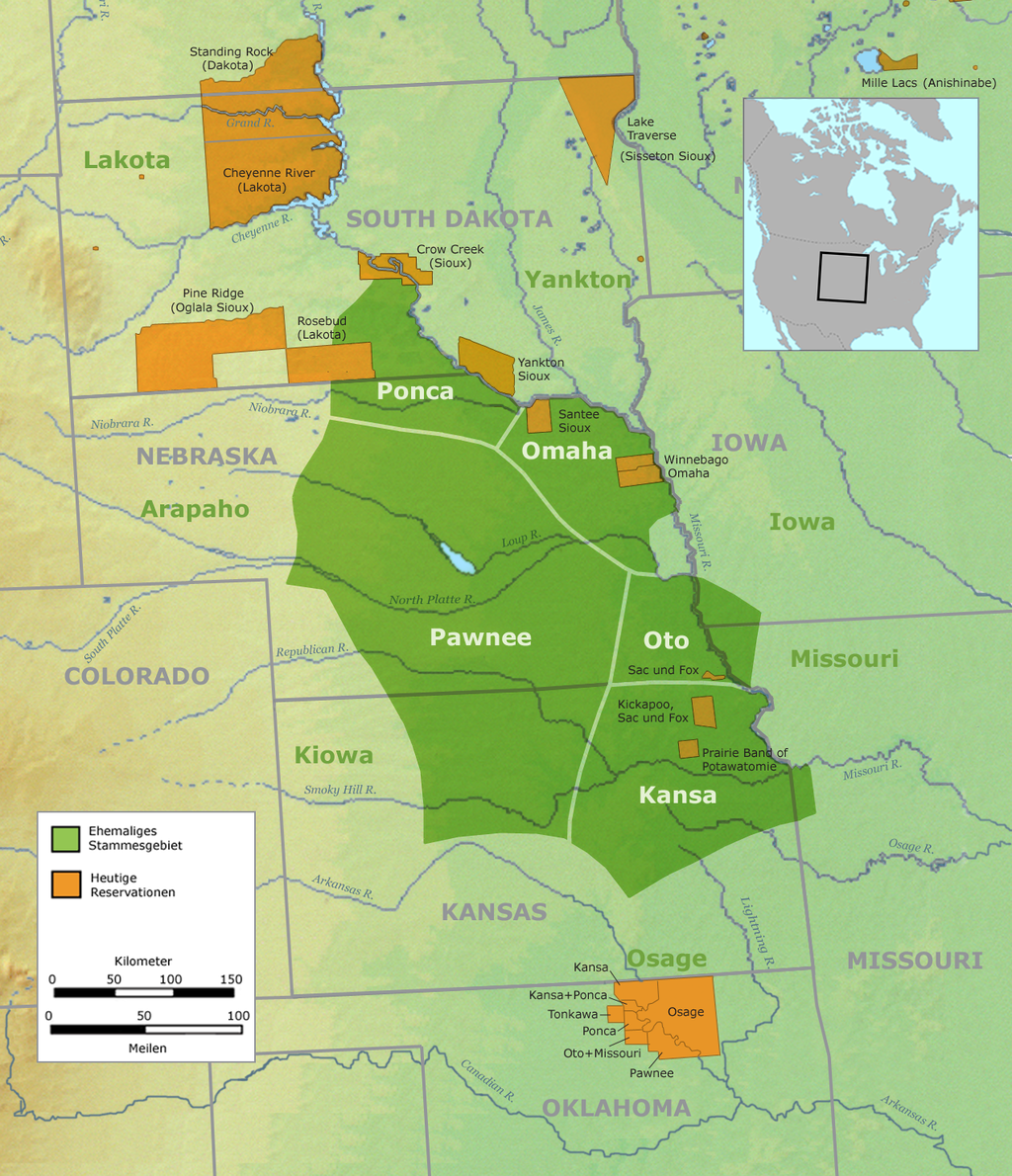 Map of the tribal territory of the Pawnee and other Native American nations in Nebraska and Kansas prior to Euro-American colonization.