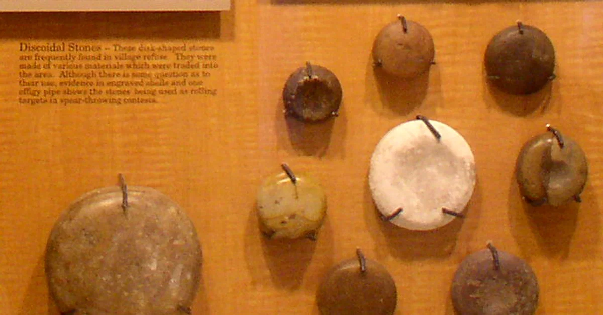Ground discoidal stones used in the Native American game of chunkey (Tchung-kee), found at the Winterville Site, Mississippi, USA.