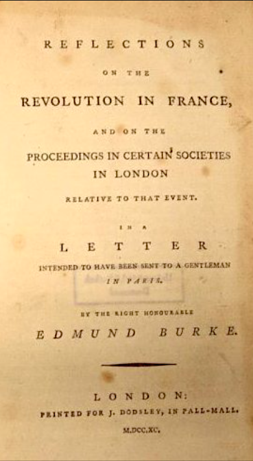 The title page of Reflections on the Revolution in France, first published in 1790 and written by Edmund Burke (1729-1797), the Anglo-Irish statesman and political thinker.