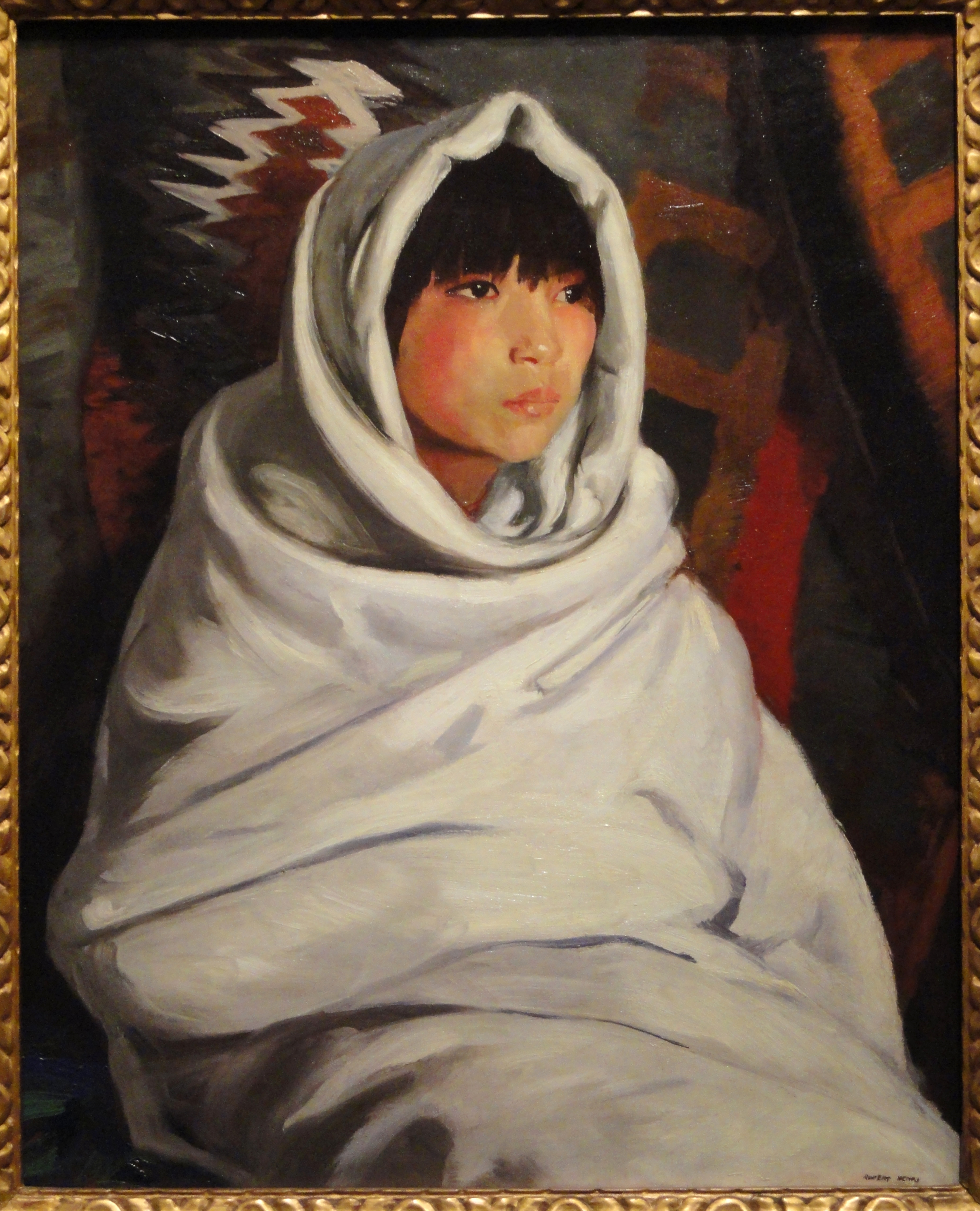 Indian Girl in White Blanket, painting by Robert Henri, 1917.