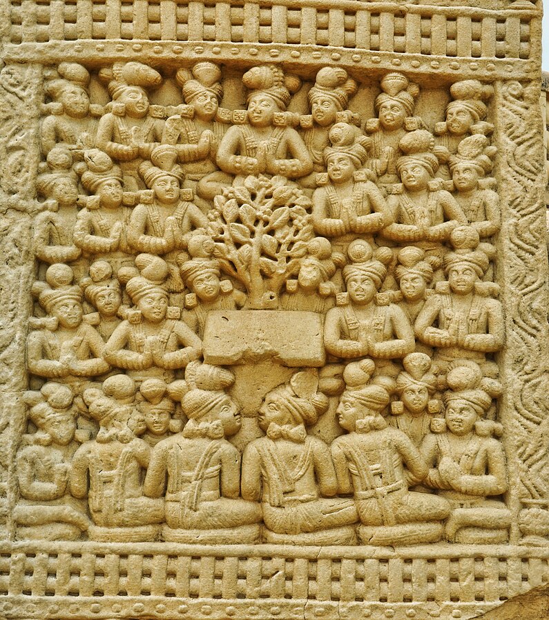Buddha's sermon to the Shakya clan after the miracle of Kapilavastu, Northern Gateway, Stupa 1, Sanchi.