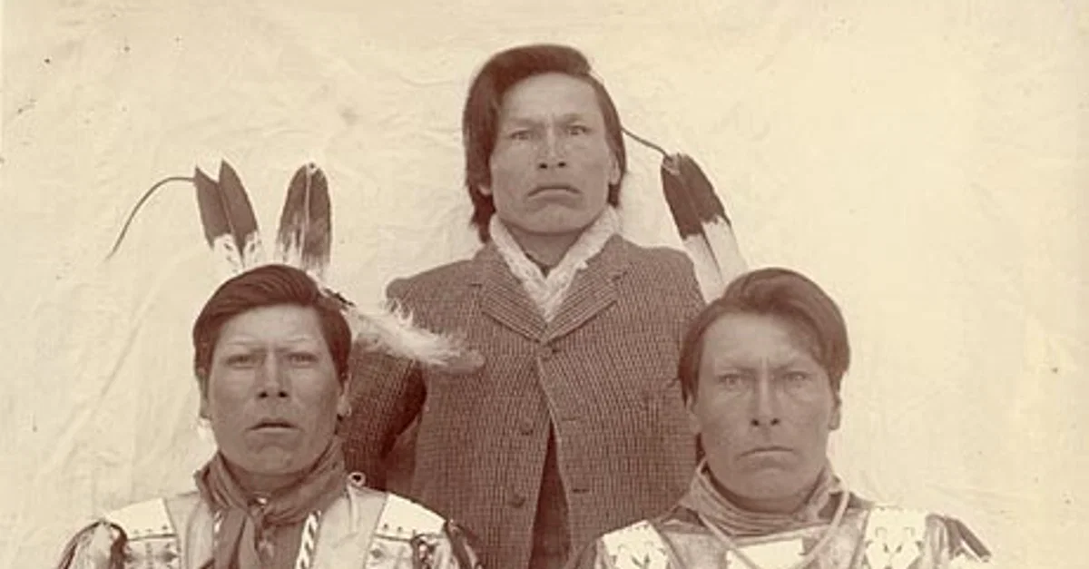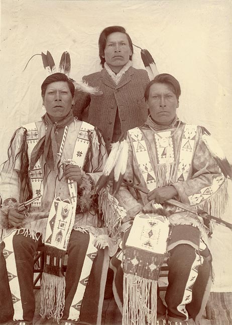 Brothers, (left to right) White Lance, Joseph Horn Cloud (l. 1873-1920), and Iron Hail (also known as Dewey Beard, l. 1858-1955), Wounded Knee survivors; Miniconjou Lakota Sioux. Their parents and families were all slaughtered in the Wounded Knee Massacre of 29 December 1890.