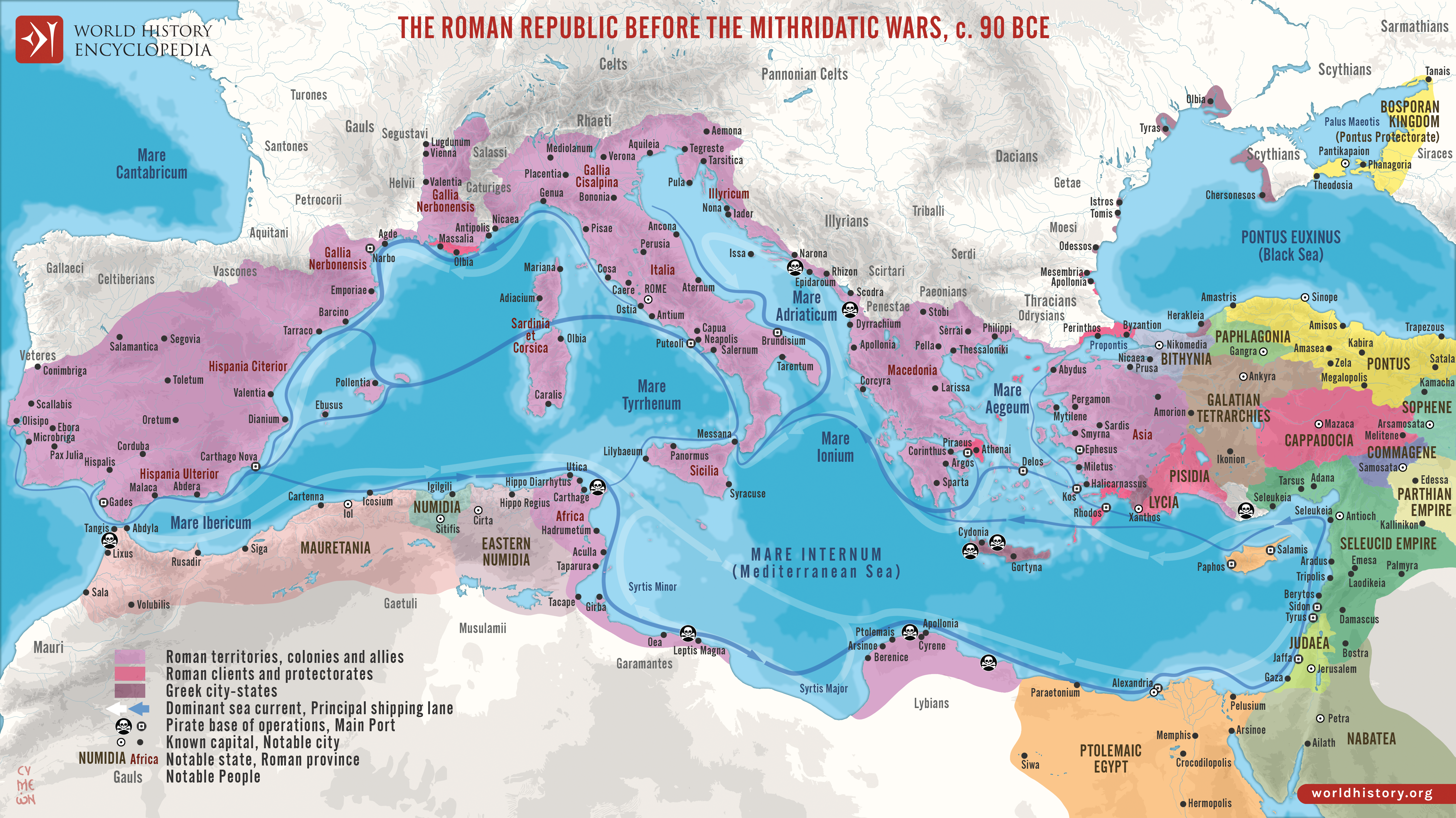 Netchev, Simeon. "Map of the Roman Republic on the eve of the Mithridatic Wars." World History Encyclopedia, 13 Feb 2024, https://www.worldhistory.org/image/18467/map-of-the-roman-republic-on-the-eve-of-the-mithri/.