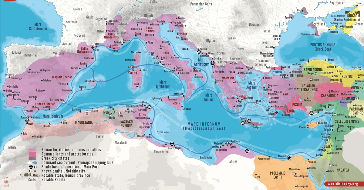 By the late 2nd century BCE, following its victories in the Punic Wars (264–146 BCE), the Roman Republic had become the dominant power in the Mediterranean world. Roman authority extended from the Iberian Peninsula and North Africa to Greece, the Aegean, and western Asia Minor, transforming a city-state republic into a far-reaching imperial system. This expansion was driven by sustained military campaigns, the creation of overseas provinces, and the growing influence of Roman elites whose power increasingly rested on conquest, wealth extraction, and control of trade routes.
