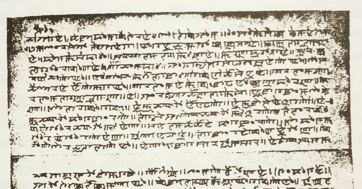 Numit Kappa, a classical Meitei language text of ancient Kangleipak (early Manipur), written in archaic Meetei script, illustration from page 128 of The Meitheis by T. C. Hodson, London, 1908.