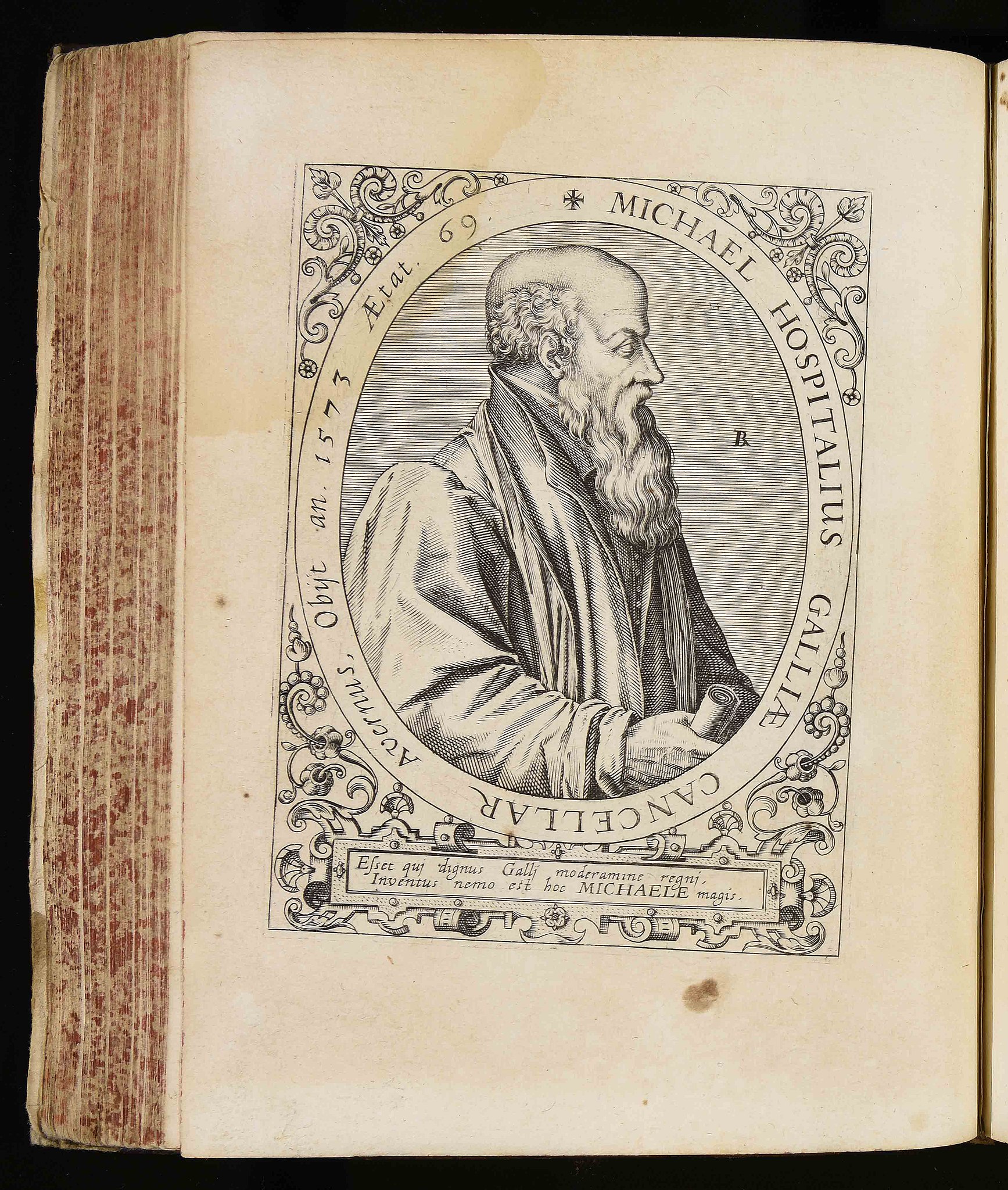 Michel de L'Hospital, portrait from Bibliotheca sive Thesaurus virtutis by Jean Jacques Boissard, Frankfurt am Main: William Fitzer 1627.