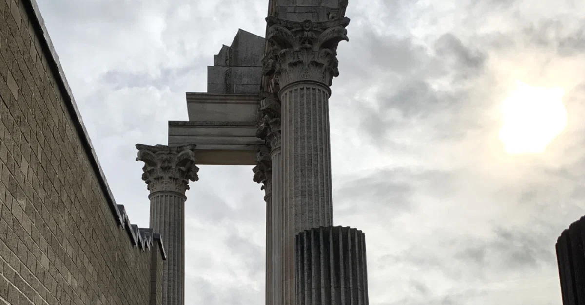 Reconstructed temple, built on top of original Roman harbour temple foundations.