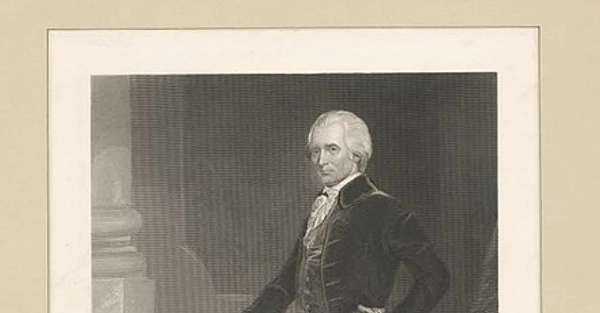 A sketch of Richard Henry Lee; on his left hand, he wears a black silk glove to hide the injury he sustained in a hunting accident that cost him four of his fingers. Engraving by Alonzo Chappel, 1861.