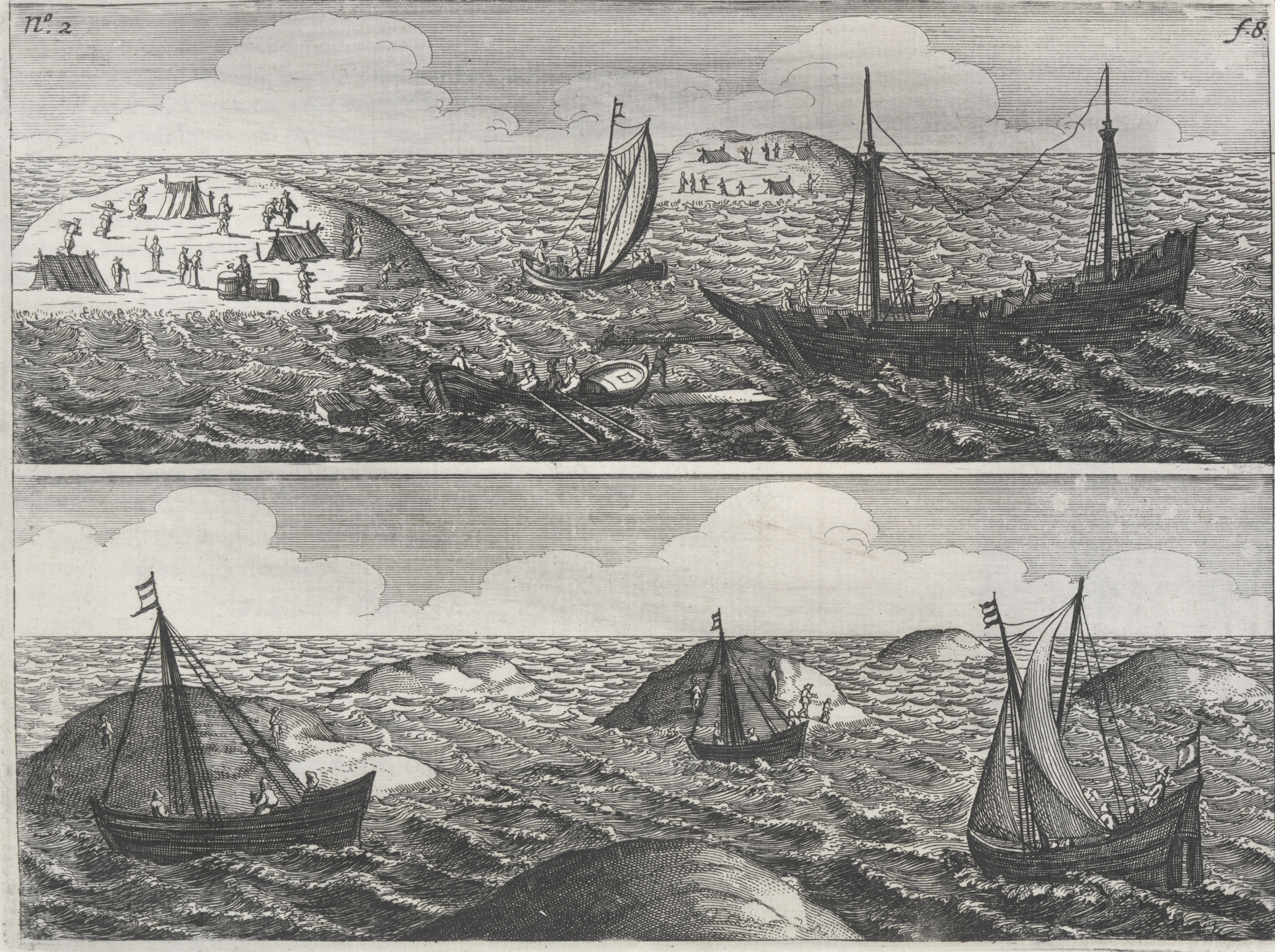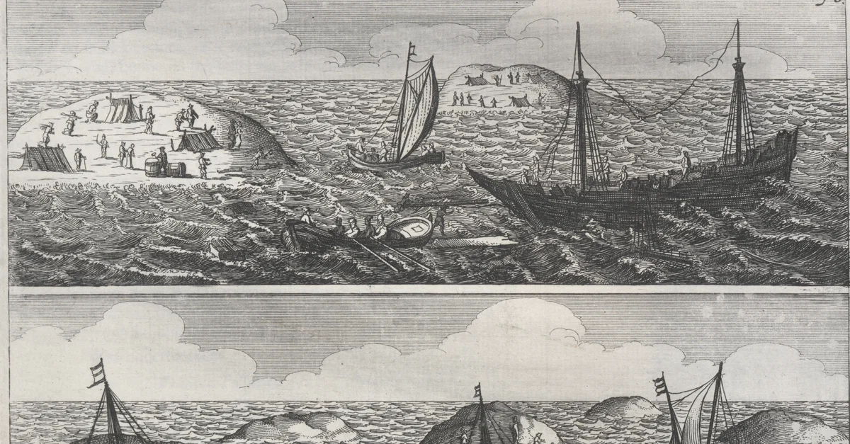 Shipwreck of the Batavia, a Dutch East India Company vessel that was wrecked off the Western Australia coast in 1629. Plate 2, from Ongeluckige voyagie, van 't schip Batavia, nae de Oost-Indien, by F. Pelsaert, F., & Vliet, J., 1647.