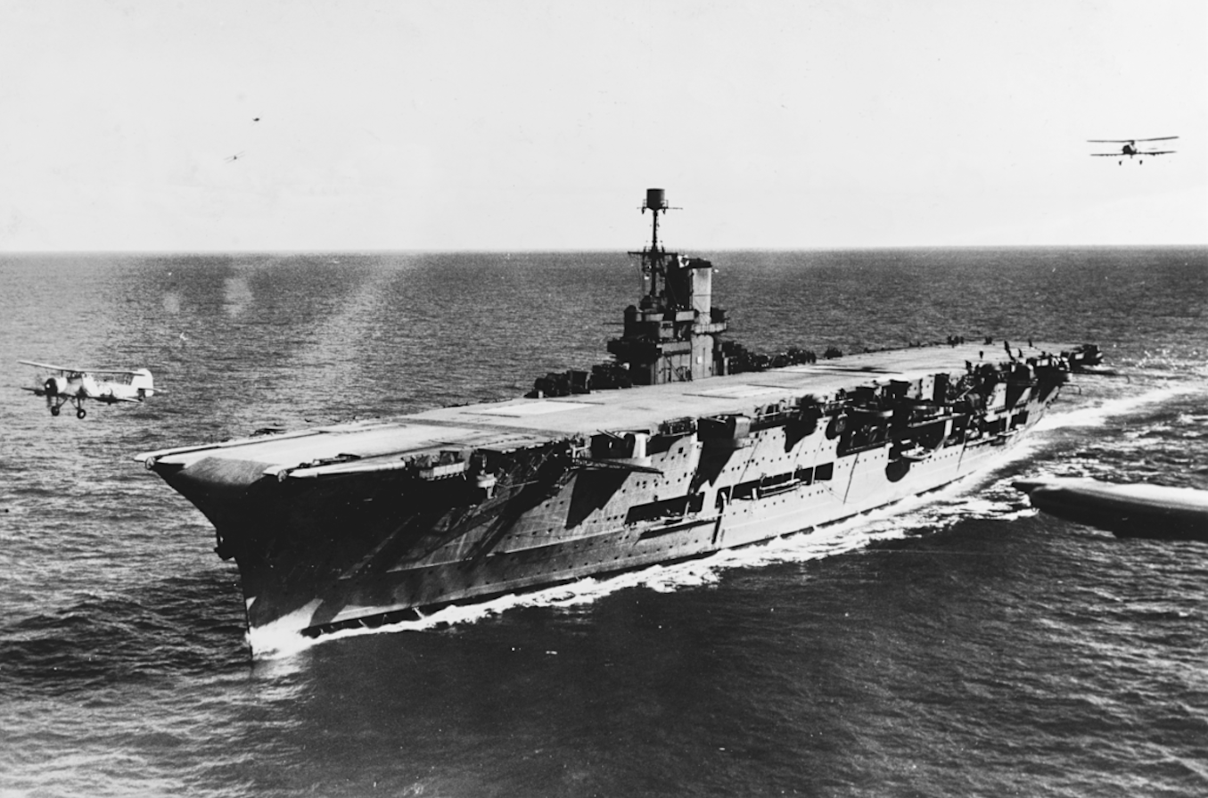 A c. 1939 photograph of the British aircraft carrier Ark Royal and its Swordfish biplanes. (U.S. Navy photo NH 79167 from the U.S. Navy Naval History and Heritage Command)