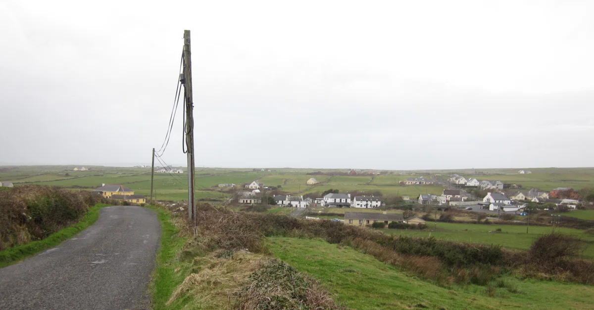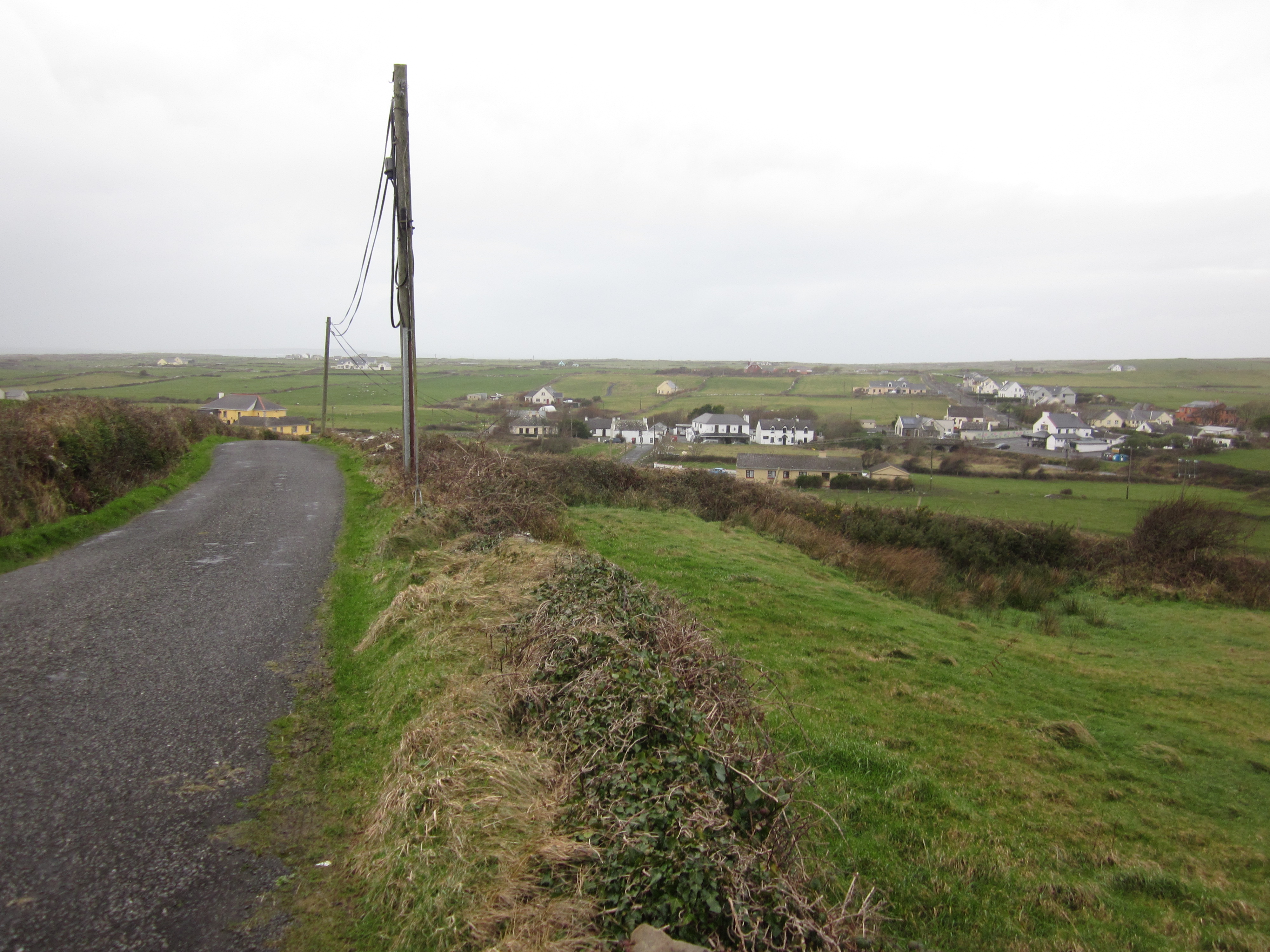 View of the Village of Doolin, Country Clare, Ireland from nearby hill.