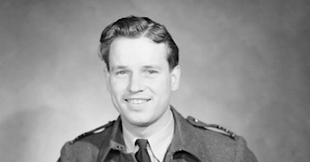 A 1944 photograph of Guy Gibson, VC, DSO, DFC (1918-44), most famous as the Squadron Leader of Operation Chastise of the night of 16 May 1943. The operation, also known as the 'Dam Busters' Raid, was carried out by a squadron of British RAF Lancaster bombers using a special bouncing bomb to breach dams in the Ruhr basin in Germany, thus flooding the heavy industry factories below.