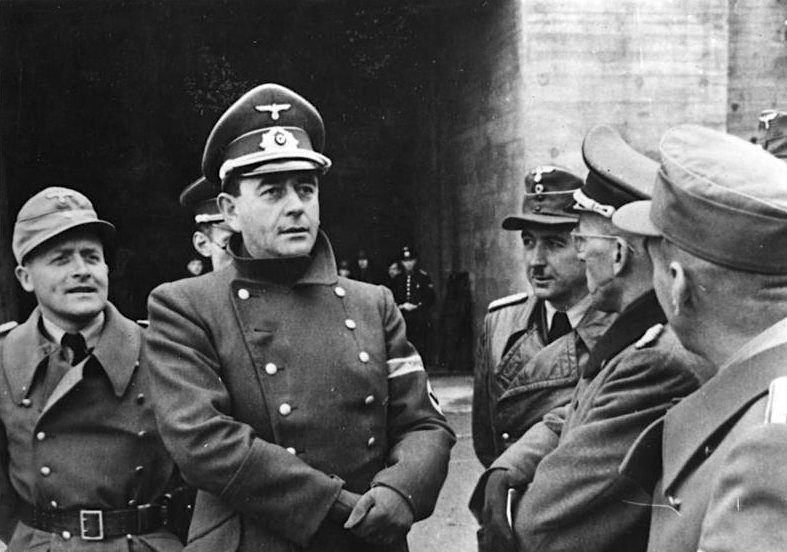 A 1943 photograph of Albert Speer (1905-81), German Minister of Armaments during the Second World War (1939-45). He is shown here inspecting the Atlantic defences. (German Federal Archives)