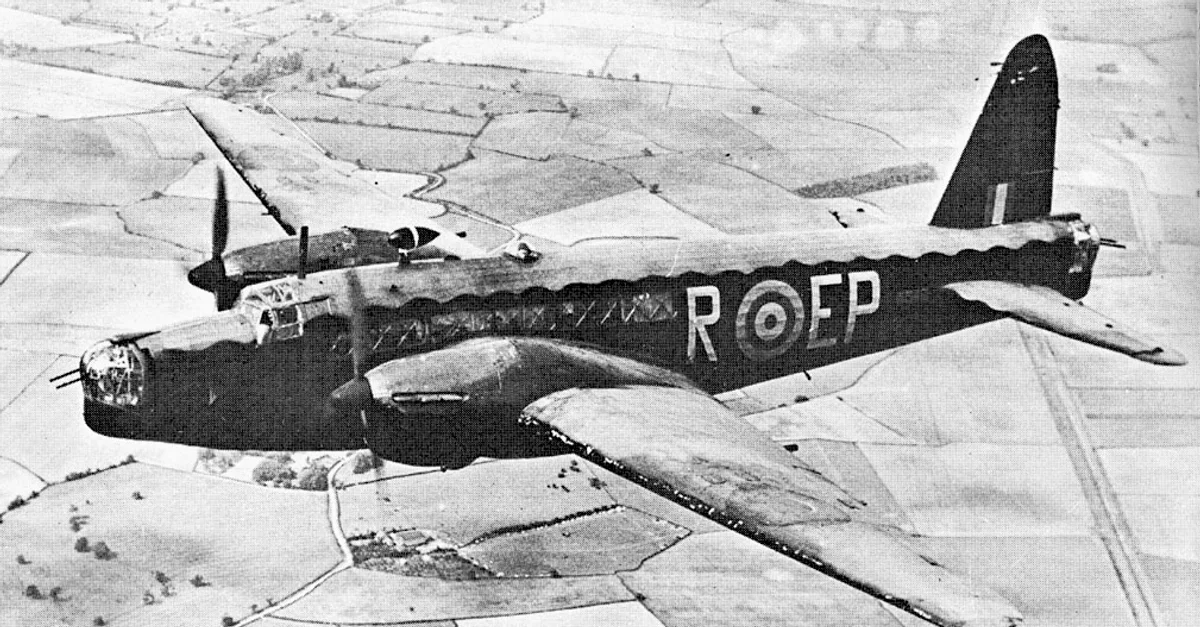 A c. 1942 photograph of a Vickers Wellington Mk II heavy bomber, used by the Royal Air Force in the Second World War (1939-45).
