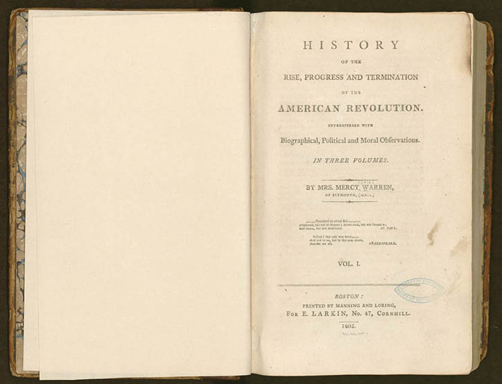The Rise, Progress, and Termination of the American Revolution by Mercy Otis Warren, Boston, 1805.