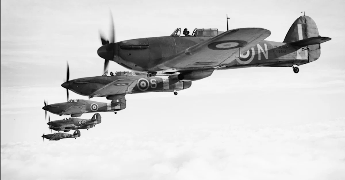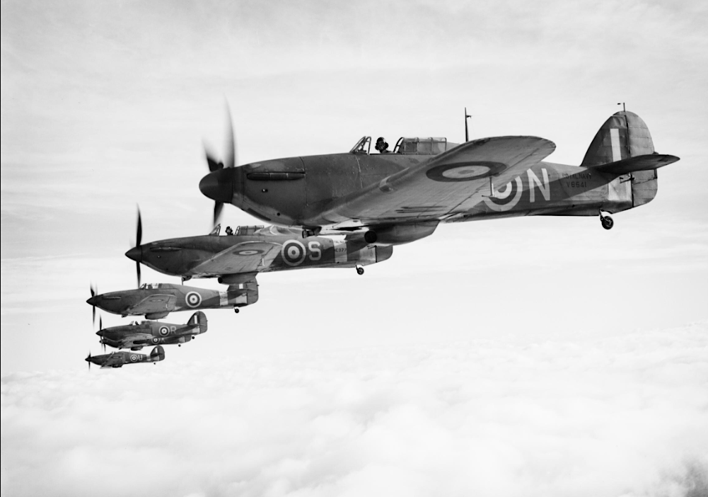 A 1941 photograph of a flight of Sea Hurricanes, the naval equivalent of the RAF Hawker Hurricane fighter plane. (Imperial War Museums)