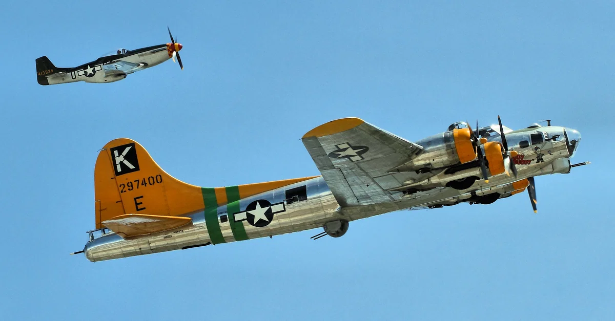 Airwolfhound. (2024, April 02). P-51 Mustang & B-17 Flying Fortress. World History Encyclopedia. https://www.worldhistory.org/image/18780/p-51-mustang--b-17-flying-fortress/