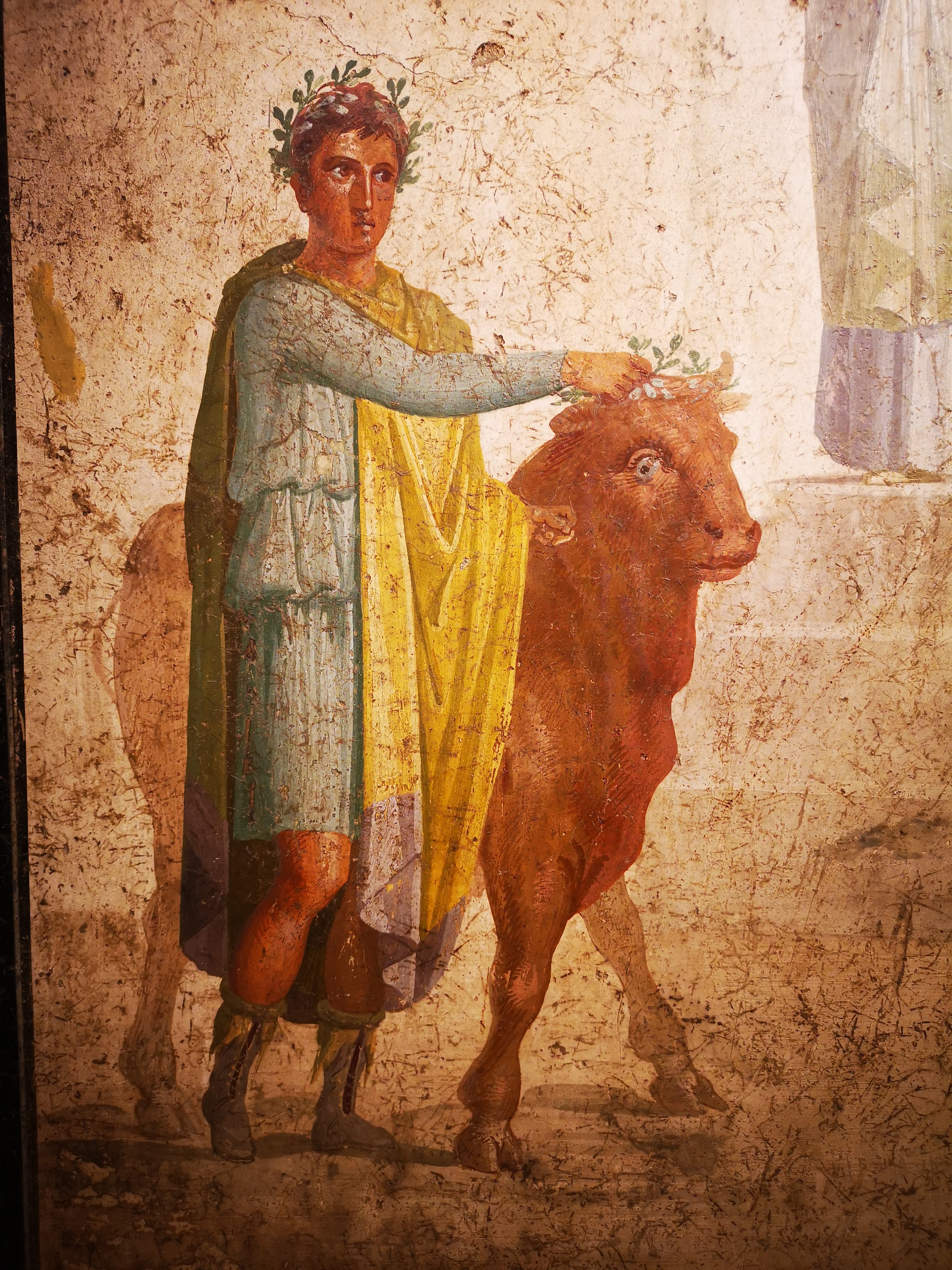 Pelias recognizes Jason, fresco from Pompeii, 1st century CE, Exhibition: Medea's Love and the Hunt for the Golden Fleece (2018-2019), Liebieghaus Skulpturensammlung, Frankfurt am Main