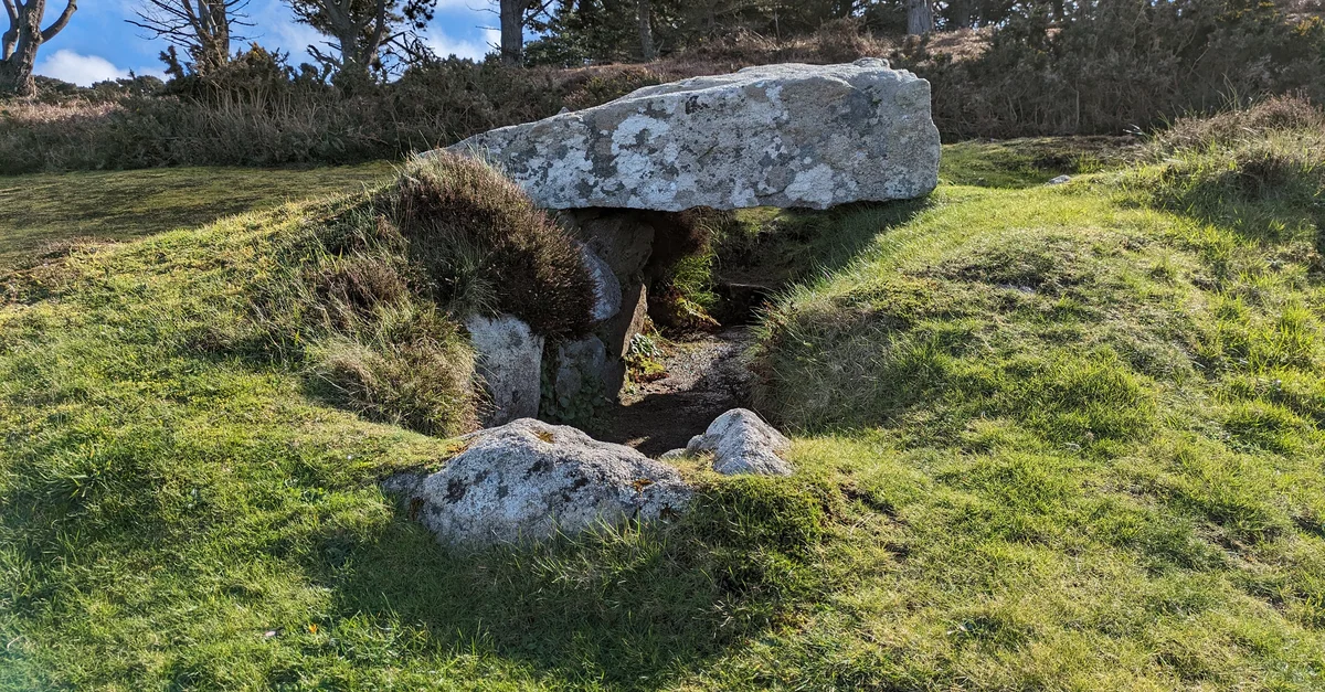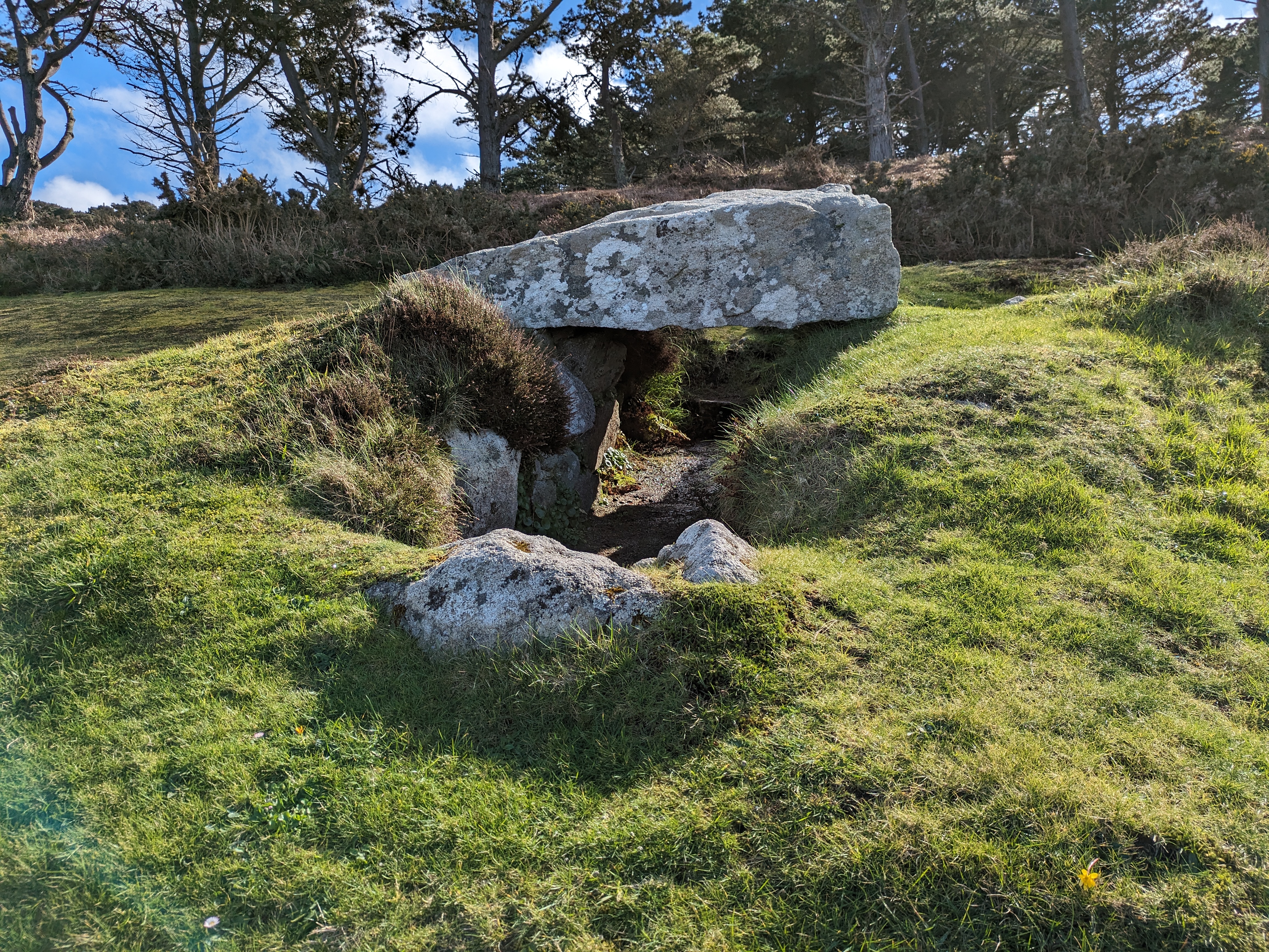This chambered entrance grave is found on the island of St. Mary's in the Isles of Scilly. It consists of a rectangular chamber and capstones on top. The exact date it was built is still unknown, but pottery found at the site suggests that it was likely built in the late Neolithic or early Bronze Age, circa 3000 to 2000 BCE. The site is currently maintained by English Heritage.