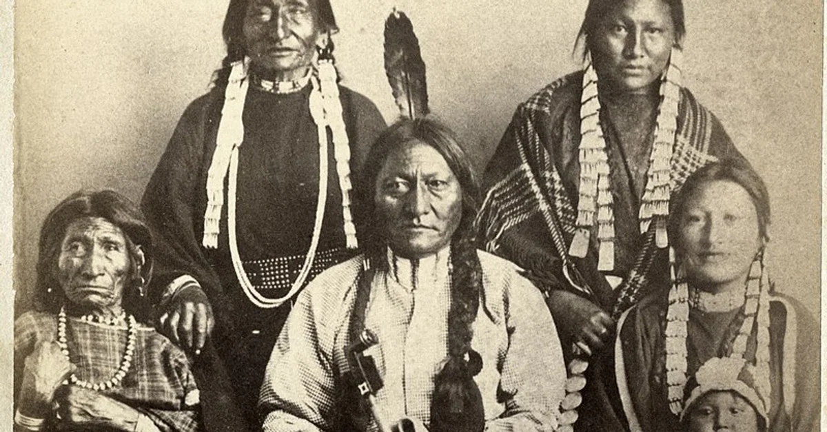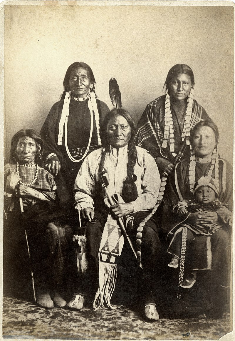 Rear (left to right) Good-Feather-Woman (sister), Walks-Looking (daughter); front (left to right) Her-Holy-Door (mother), Sitting Bull, Many-Horses (daughter) with her son, Courting-a-Woman