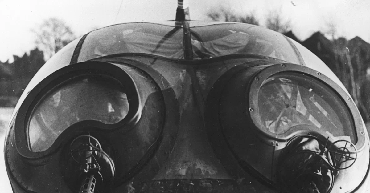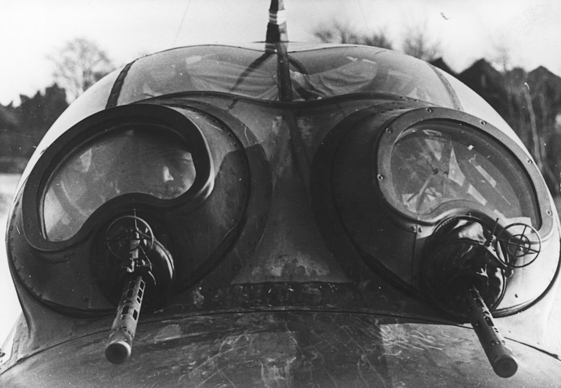 The rear cockpit machine guns of a Junkers Ju 88 bomber. The aircraft was flown by the German Luftwaffe during the Second World War (1939-45).