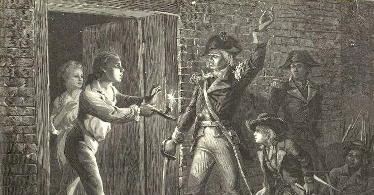 A print depicting Ethan Allen demanding the surrender of Fort Ticonderoga, 10 May 1775. By John Steeple Davis, 1875. Originally published in The Aldine: the Art Journal of America. (New York: The Aldine Co., 1868-1879)