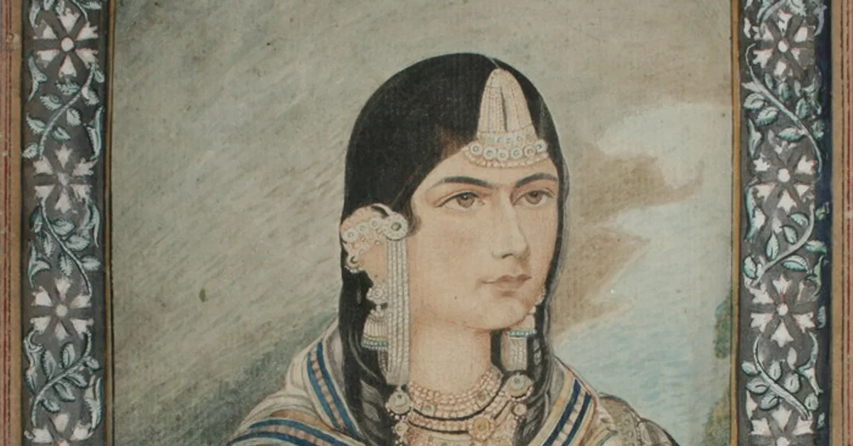 Hamida Banu Begum (c. 1527 to 29 August 1604), wife of Mughal Emperor Humayun, mother of Emperor Akbar, miniature painting, opaque watercolor or gouache on paper, Lucknow School of painting, c. late 19th century.