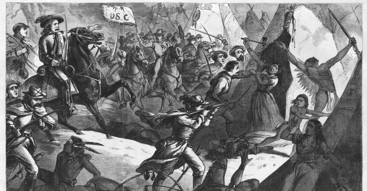 Newspaper, Frank Leslie's Illustrated. "The Attack on Black Kettle's Cheyenne Camp." World History Encyclopedia, May 23, 2024. https://www.worldhistory.org/image/18974/the-attack-on-black-kettles-cheyenne-camp/.