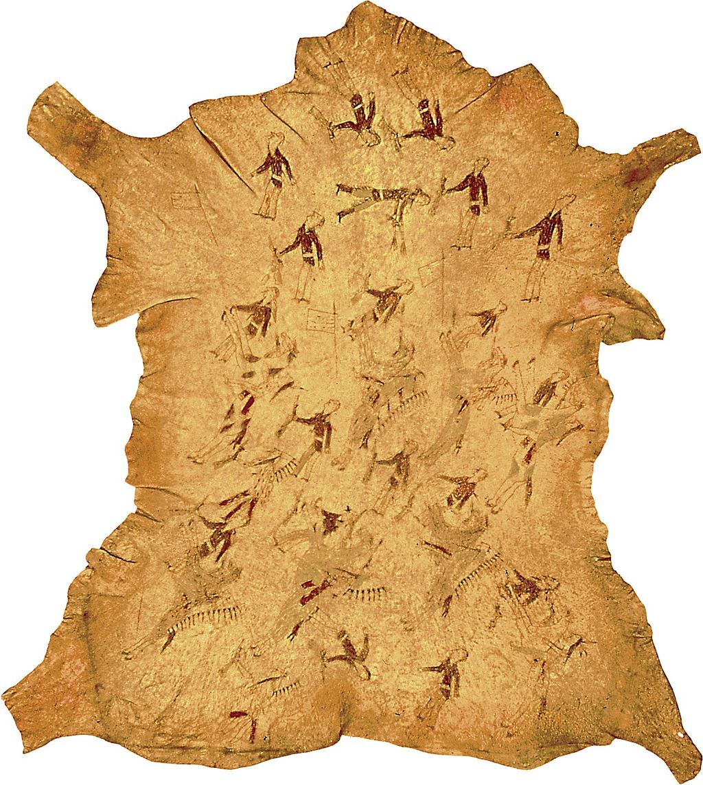 The Battle of the Little Bighorn of June 25-26 1876, deerskin painting by an unknown Cheyenne artist, c. 1878.