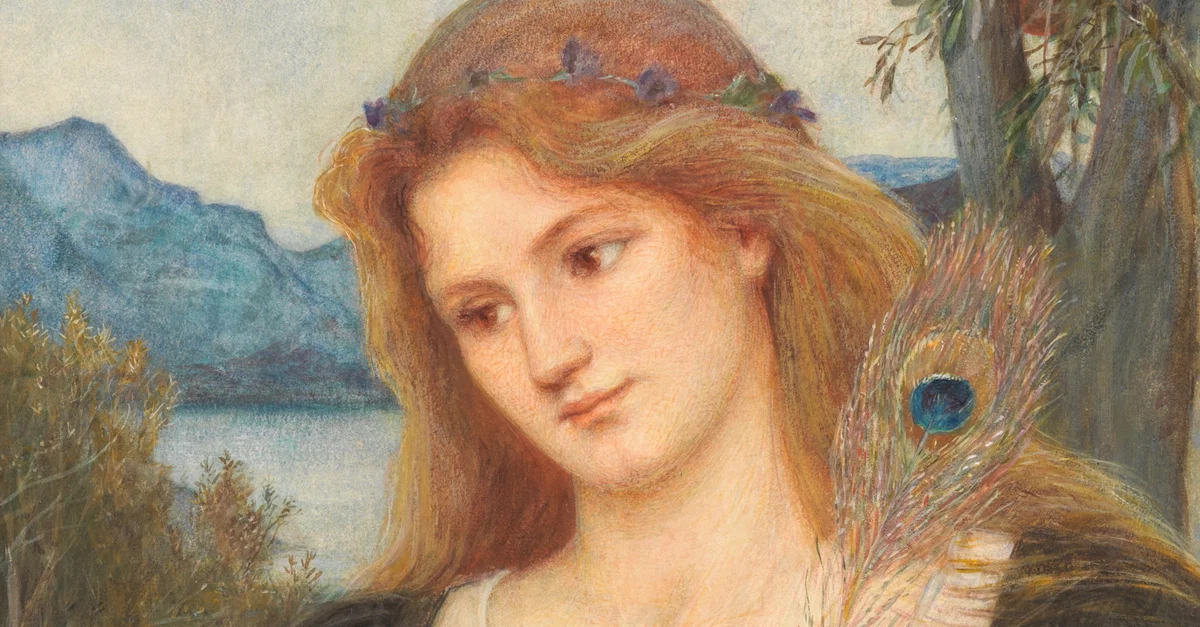 Hera, watercolor, gouache, and possibly waterglass (sodium silicate) on paper stretched on wood panel by Marie Spartali Stillman, c. 1889.