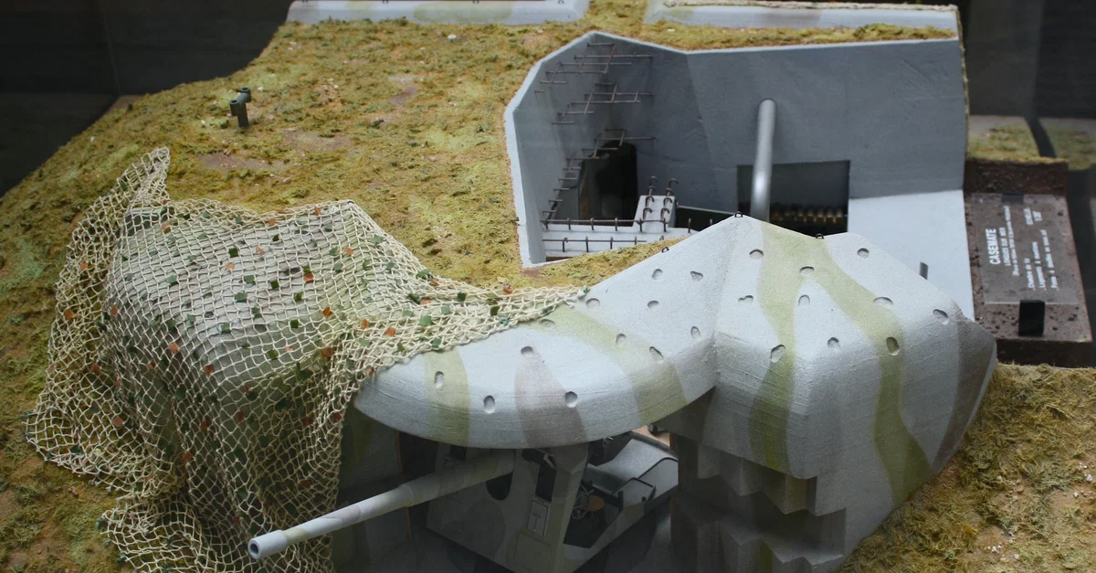 A model of a 150-mm gun casement located at Longues-sur-mer on Gold Beach of the D-Day Normandy landings of 6 June 1944. (The Mémorial de Caen)