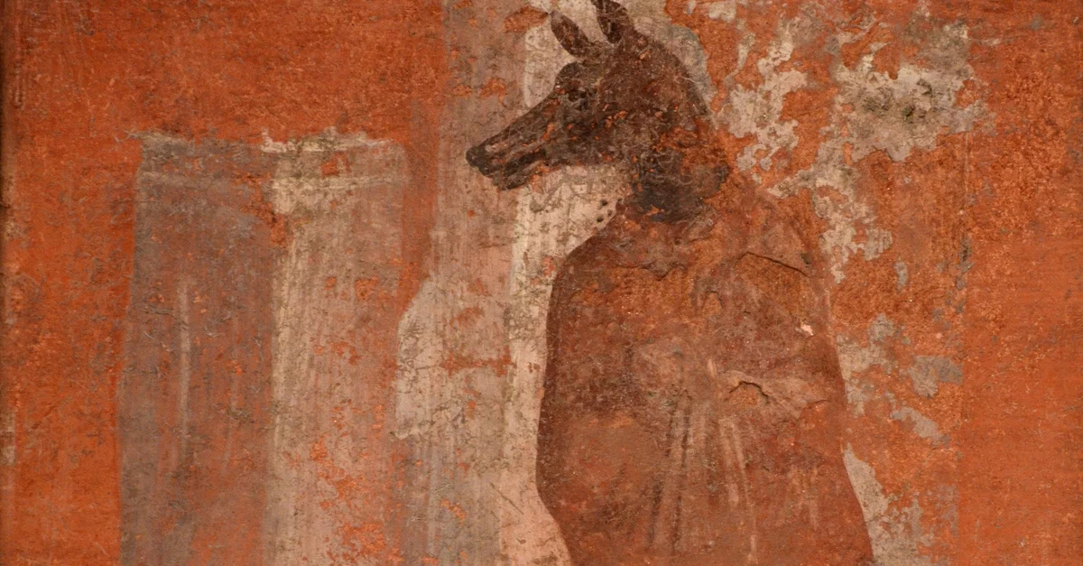 Fresco showing a priest wearing a mask of Anubis, from the Temple of Isis in Pompeii, Naples National Archaeological Museum. The cult of Isis was widely spread in the Hellenistic period because of the religious links that the Greeks maintained with Egypt. It was particularly popular in Pompeii because of the city's strong commercial ties with that region.