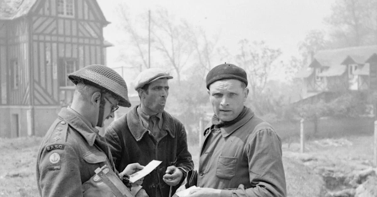 Museums, James Mapham - Imperial War. "French Civilians & British Soldier, D-Day." World History Encyclopedia, June 04, 2024. https://www.worldhistory.org/image/19046/french-civilians--british-soldier-d-day/.