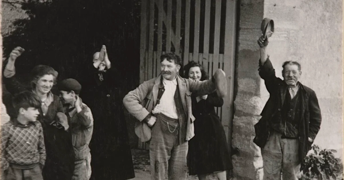 A photograph showing French civilians welcoming Allied troops on D-Day, 6 June 1944. (Imperial War Museums)