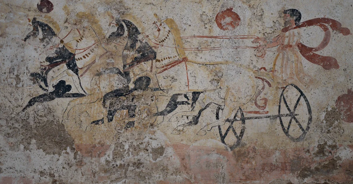 Raddato, C. (2024, June 10). Lucanian Fresco of a Chariot Race. World History Encyclopedia. https://www.worldhistory.org/image/19071/lucanian-fresco-of-a-chariot-race/