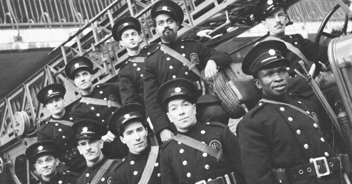 A photograph of an Auxiliary Fire Service unit in London during the London Blitz. (Imperial War Museums)