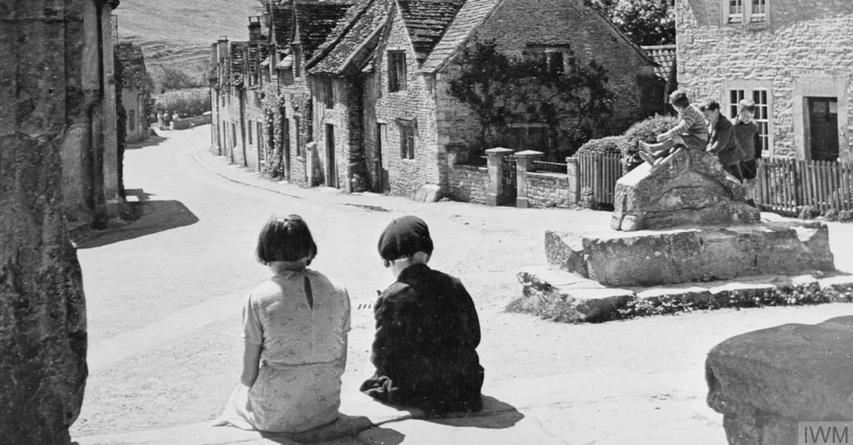 A photograph of British children playing in the village of Castle Combe in Wiltshire having been evacuated during the Second World War (1939-45). (Imperial War Museums)