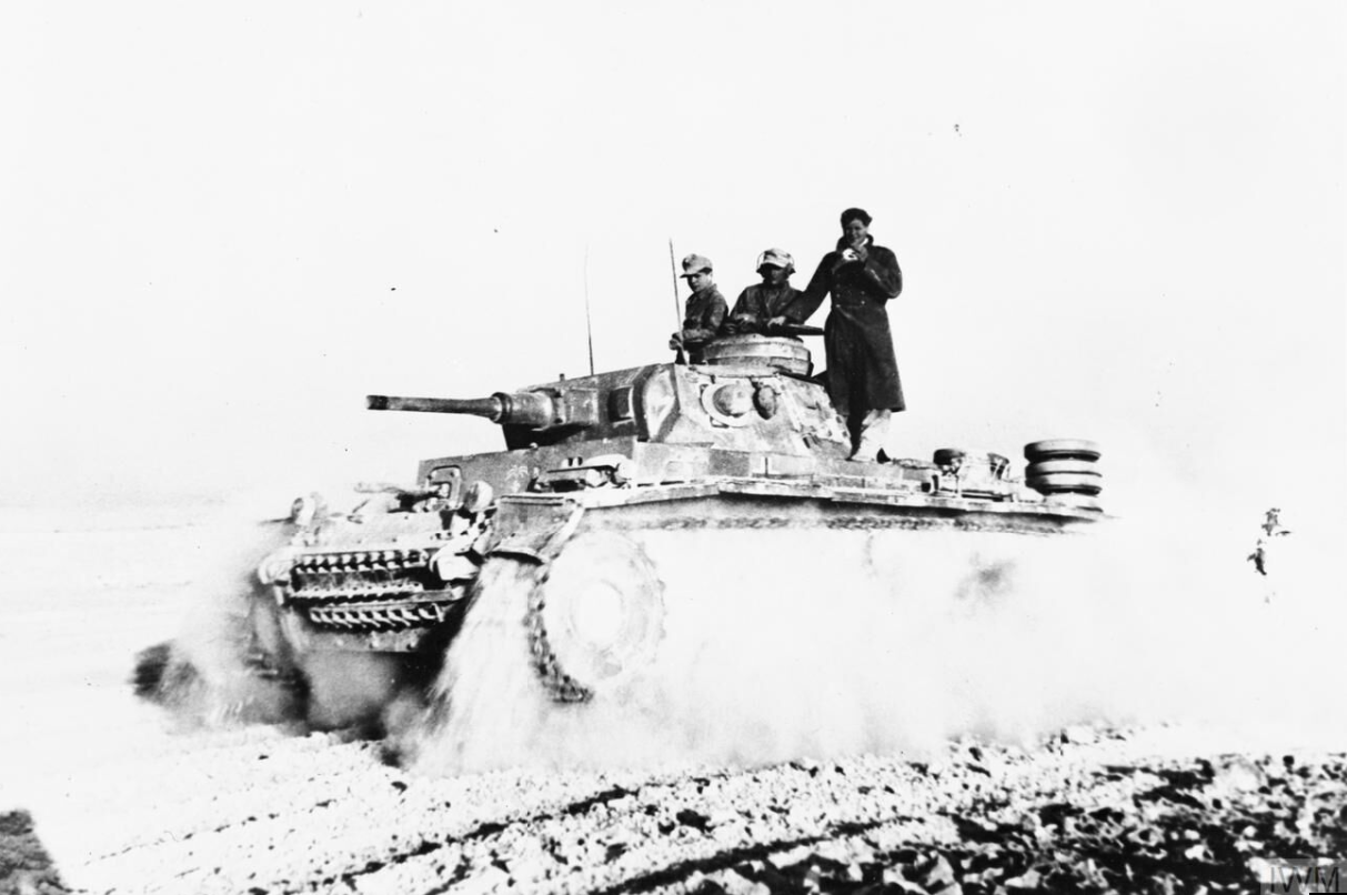 A German Pzkw Mk III tank during the Battle of Gazala (May-June 1942) in the North Africa Campaign during the Second World War (1939-45). (Imperial War Museums)