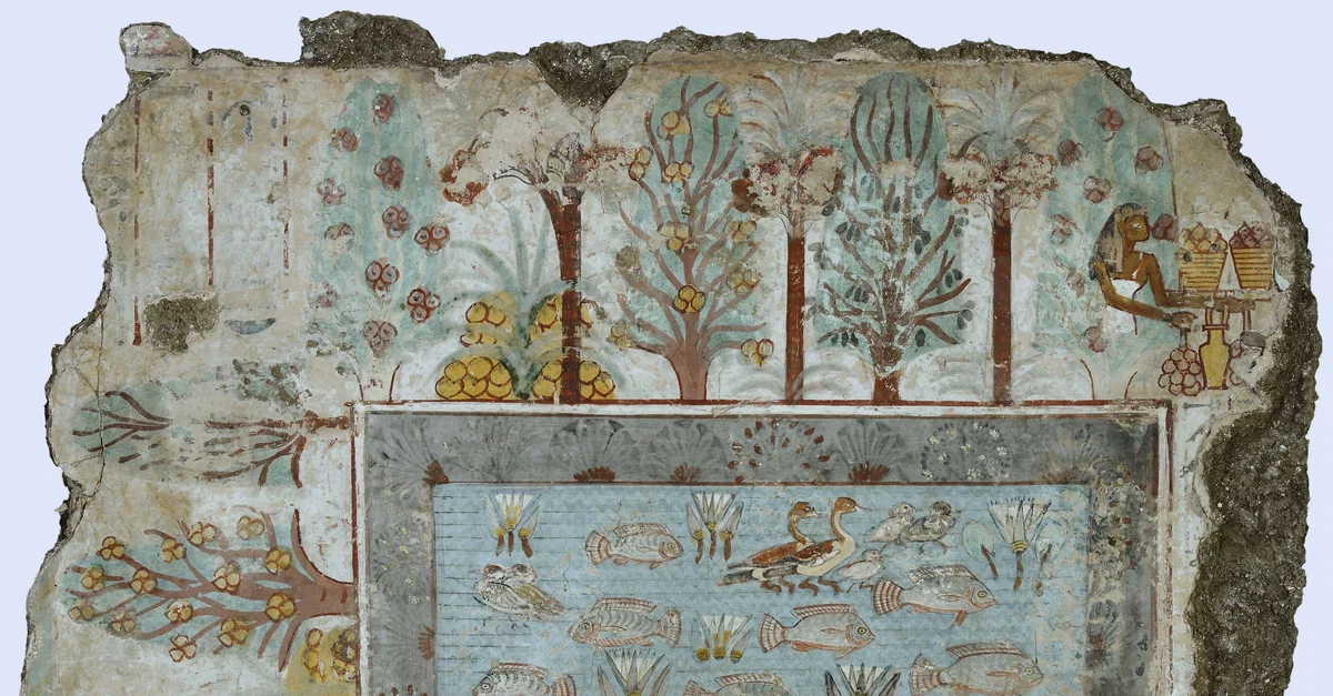 Tomb painting representing the pool in Nebamun's estate garden, Tomb of Nebamun, Thebes, Egypt, c. 1400 BCE.