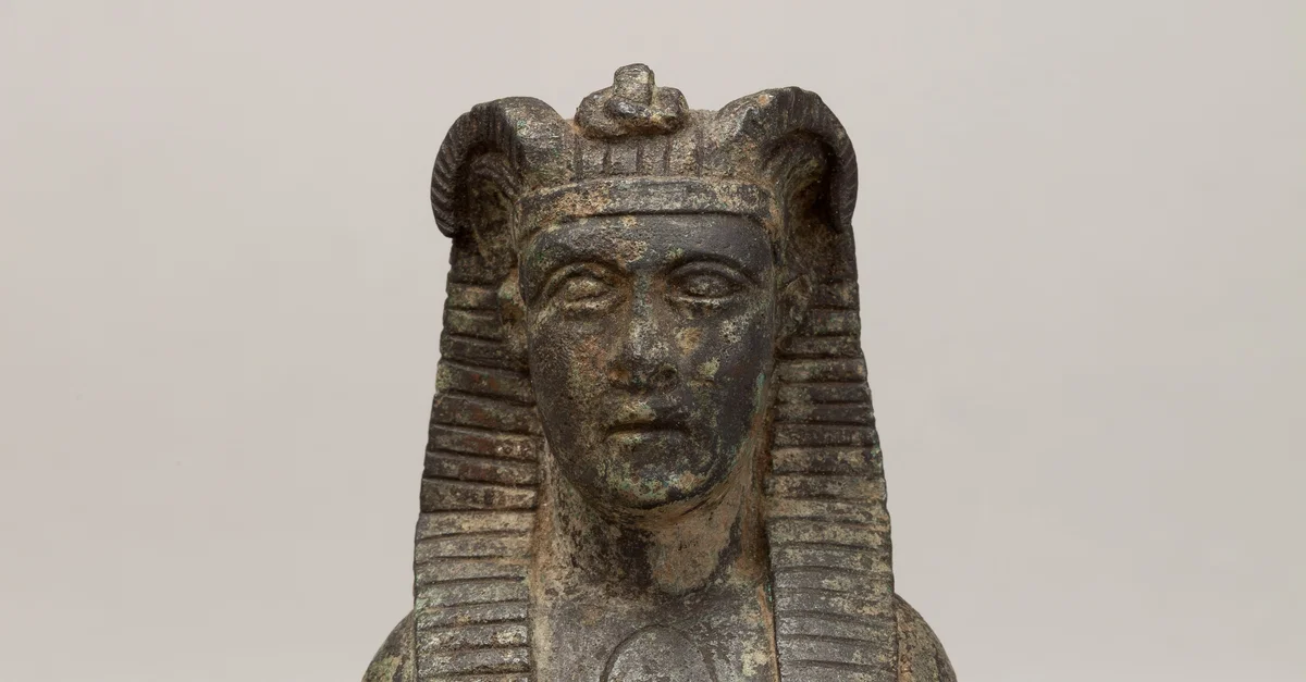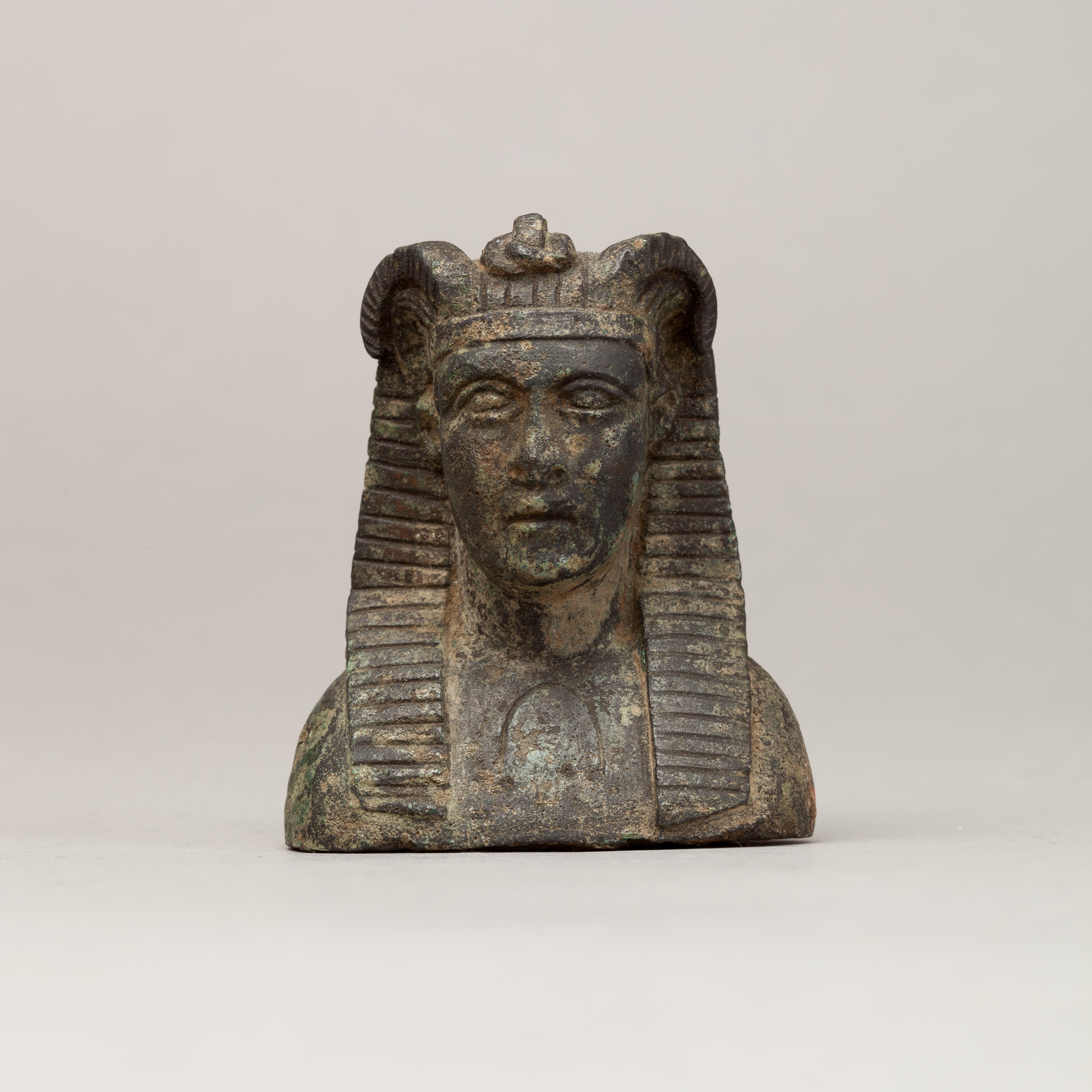 Copper alloy bust of Alexander wearing a nemes headdress. From Egypt, c. 150 BCE to 200 CE.