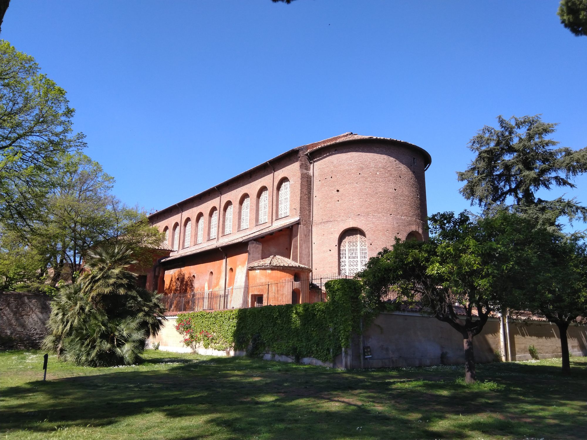 The Basilica of Santa Sabina on the Aventine Hill in Rome was constructed at the time of Pope Celestine I (422-432 CE). It is a major example of the architectural characteristics of an Early Christian basilica. It also preserves its original 5th-century wooden doors, depicting Early Christian imagery.