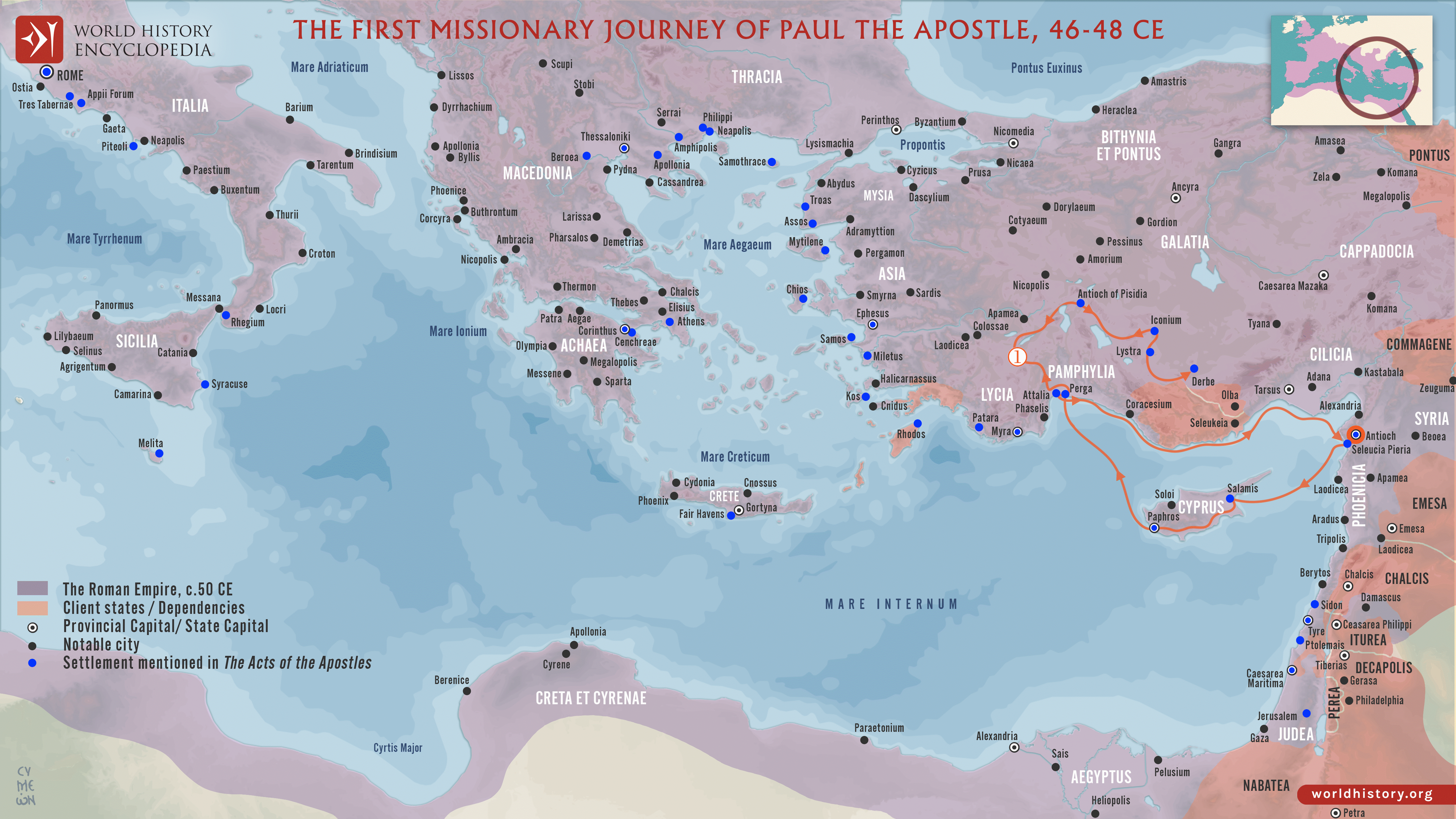 Netchev, S. (2024, July 16). Paul the Apostle's First Missionary Journey (c. 46-48 CE). World History Encyclopedia. https://www.worldhistory.org/image/19232/paul-the-apostles-first-missionary-journey-c-46-48/