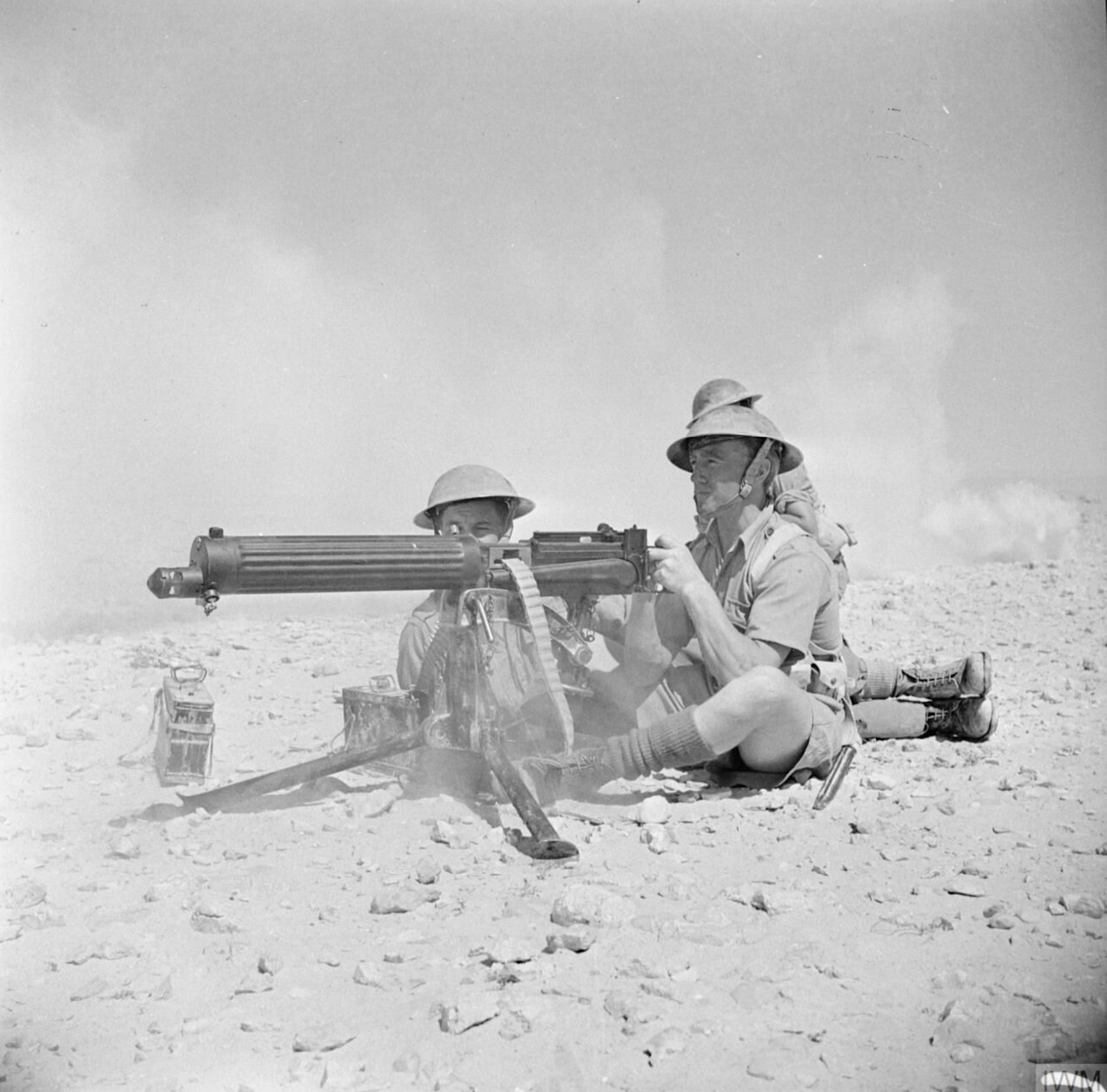 A photograph of a Vickers machine gun position of the British Eighth Army at the First Battle of El Alamein (July 1942) during the Western Desert Campaigns (June 1940 to January 1943) in North Africa. (Imperial War Museums)