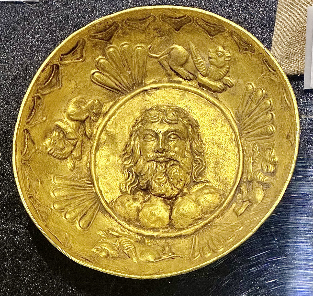 Gold bowl depicting Dionysus, from Gandhara, c. 2nd century BCE.