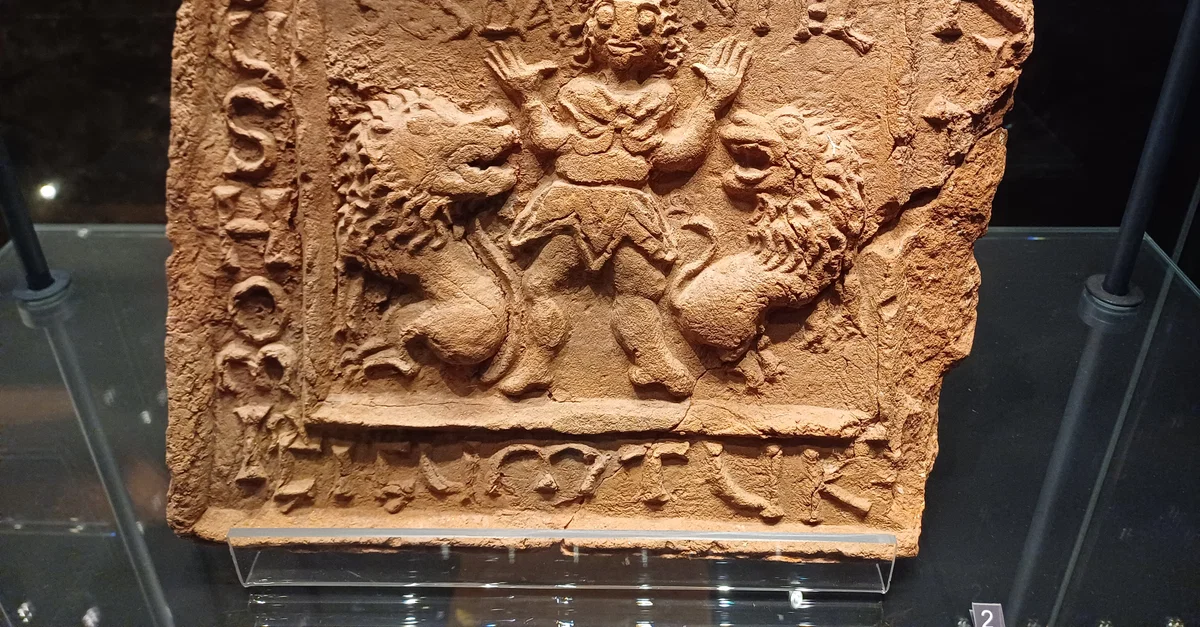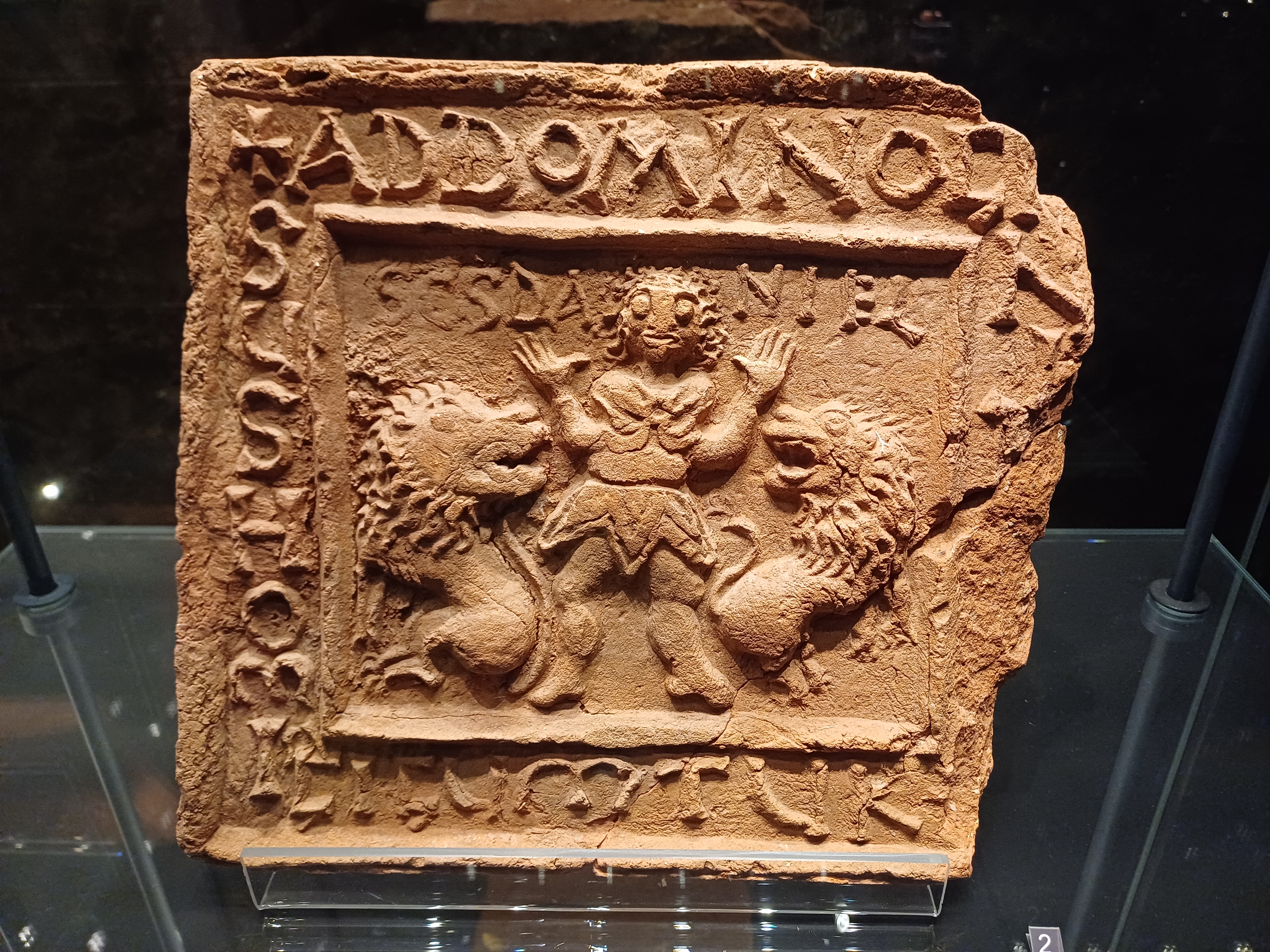 Terracotta icon depicting Daniel in the lions' den, found in Vinicko Kale, North Macedonia, 5th-6th century.
