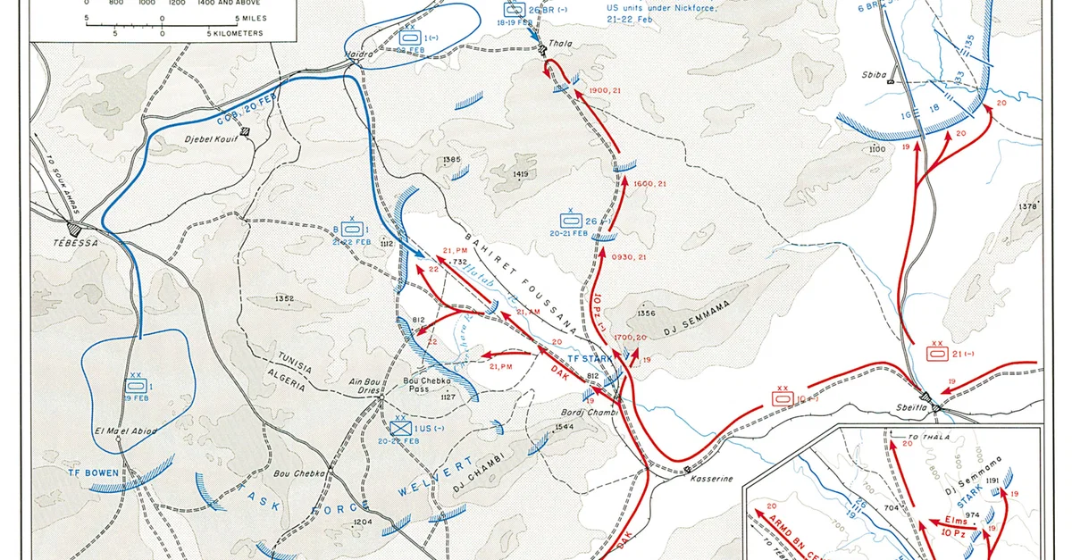 Defense, United States Department of. "Map of the Battle of Kasserine Pass." World History Encyclopedia, 21 Aug 2024, https://www.worldhistory.org/image/19363/map-of-the-battle-of-kasserine-pass/.